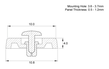 Foot with staple or screw. Materials thermoplastic rubber TPR (frame) and polyamide PA6 (staple).