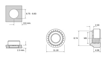 Shaping bushing WECLA is an internally threaded fastening element mounted in thin plates with compression.