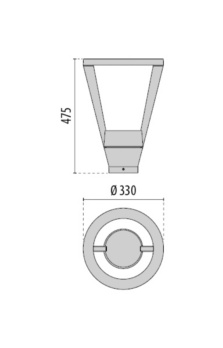 Pylväsvalaisin kaupunkivalaistukseen. Painevalettu alumiinirunko, karkaistu lasi, IP66-liitäntä, ylijännitesuoja 10 kV.