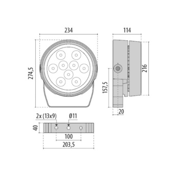 LED-valonheitin ON/OFF IP66. Kaksi runkoa jäähdytykseen, karkaistu lasi, teknopolymeerilinssit ja arkkitehtoninen optiikka ammattikäyttöön.